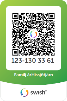![]() | Årskort för en familj för fiske i Hissjötjärn. Familjekortet gäller för 2 vuxna och ungdomar upp till 20 år boende på samma adress. Max 6 regnbågar per dygn får fångas. |